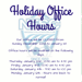 The NFSC office is taking a little break as well! Please see below for days that we are closed and modified hours.